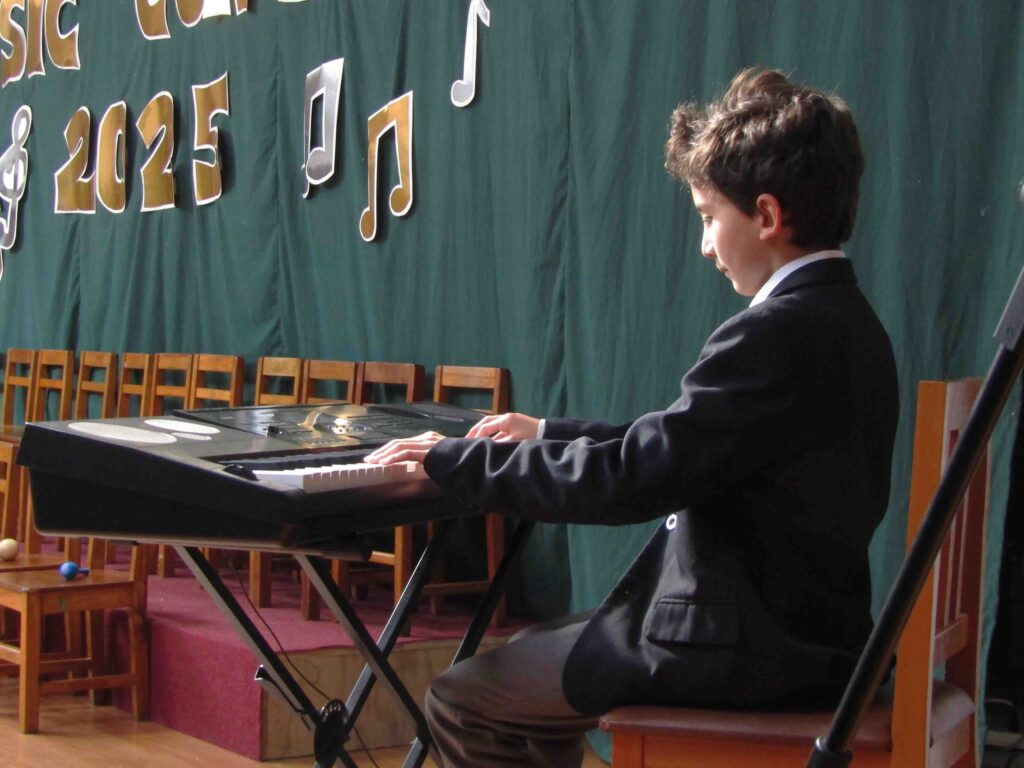 También hay que destacar que existió un interludio musical con el alumno de Junior 5, Felipe Álvarez quien tocó una versión en piano un tema de la banda Coldplay, todo esto en el marco de este evento de música muy importante para los más pequeños de nuestro colegio.