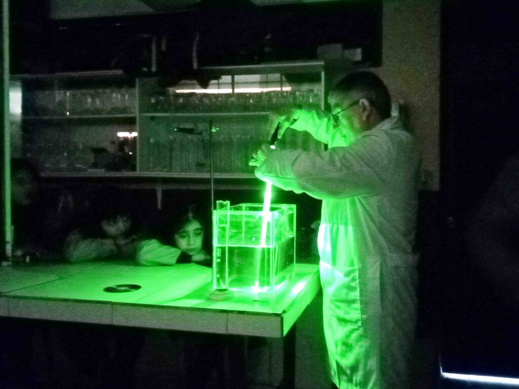 El pasado 18 de julio, los alumnos de Junior 3 fueron al Laboratorio de Ciencias para presenciar una serie de experimentos muy interesantes, el fenómeno de la luz, donde uno de los objetivos fue: Diferenciar las fuentes de luz naturales, artificiales, y comprobar de que esta viaja a línea recta, al igual que se refracta y refleja en distintos elementos, algo que dejó muy impresionados a todos los alumnos de tercero básico y que dejó todo preparado para el momento final, ya que se mezclaron todos los tipos de luces y se otorgó una experiencia muy cercana a la de un show de luces, lo que dejó muy contentos a todos quienes presenciaron el espectáculo.