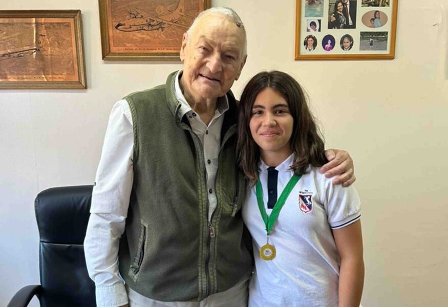 Maite junto con el entonces Rector de nuestro colegio Mr. Terrence Martin después de lograr el primer lugar en el 2x Alevin Femenino del Nacional de Regata en Curauma, Valpo. en 2023