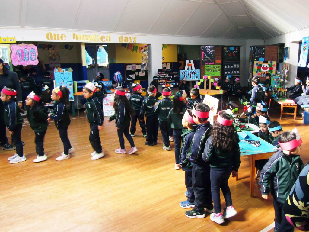 La Jornada comenzó a las 10 de la mañana, donde todos los alumnos y profesoras del área, se reunieron en la zona central de parvulario para comenzar los festejos. Aquí la jefa del área Infants, Ma’am Úrsula Salazar comenzó contando todos los números desde el 1 al 100, en una idea de celebrar, pero también de aprender, debido a que uno de los objetivos de esta jornada es que los niños comiencen a reconocer cifras más allá de los dos dígitos, para así ir prepararse para el resto de su vida escolar.
