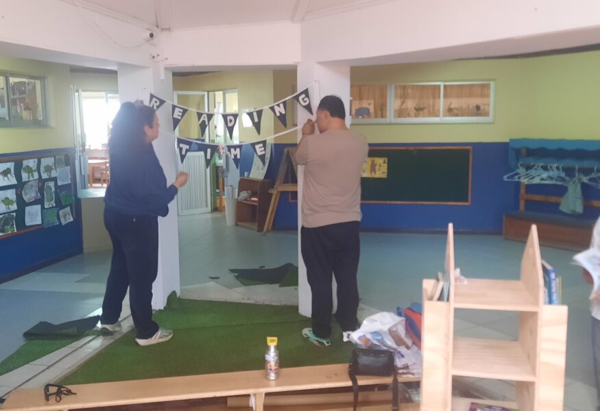 A principios de este mes, los apoderados de Transition B bajo «Acción Social», entregaron un espacio de lectura para los alumnos de infants, con la lectura apropiada para los niños y con sillas y una biblioteca para todos los alumnos del área.