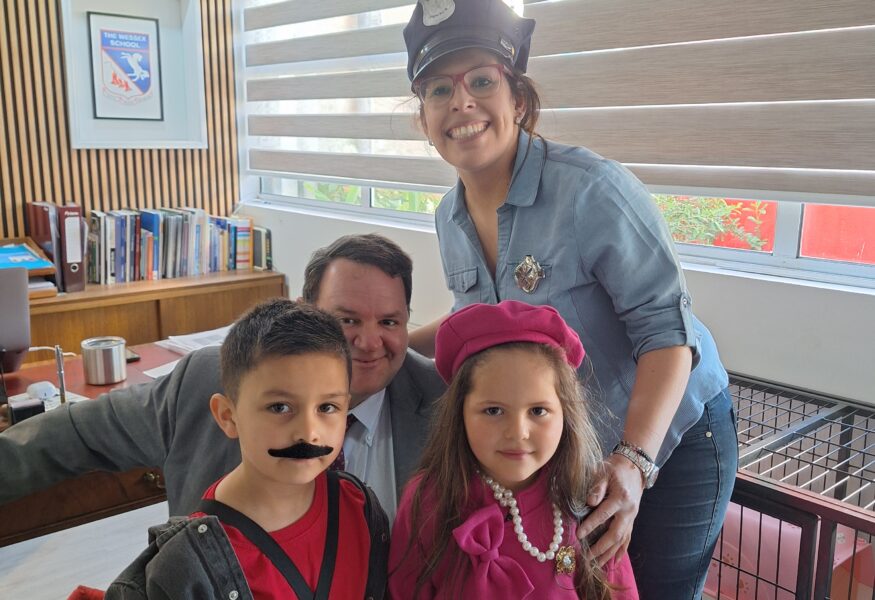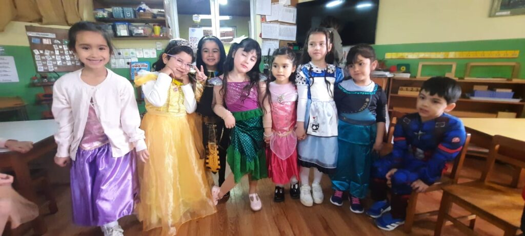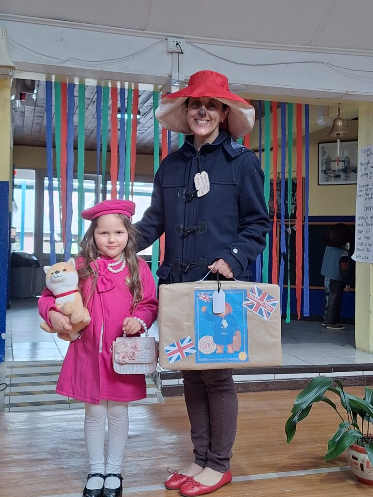 Entre algunos de los disfraces que marcaron la jornada, se encuentra una de las alumnas que llegó como la Reina Isabel de Inglaterra y uno de los alumnos que llegó como uno de las características cabinas telefónicas de la zona. Sin dudas, mucha creatividad entre los más pequeños.