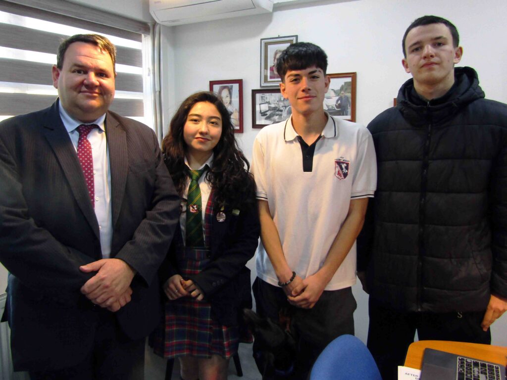 Participaron los estudiantes de Tercero Medio B: Mariana Leva Muñoz, Victor Esteban Fonseca y Sebastián Trucco Belmar junto a la profesora guia Ma’am Gisela Ochoa Navarrete en un encuentro que estuvieron preparando durante dos meses.