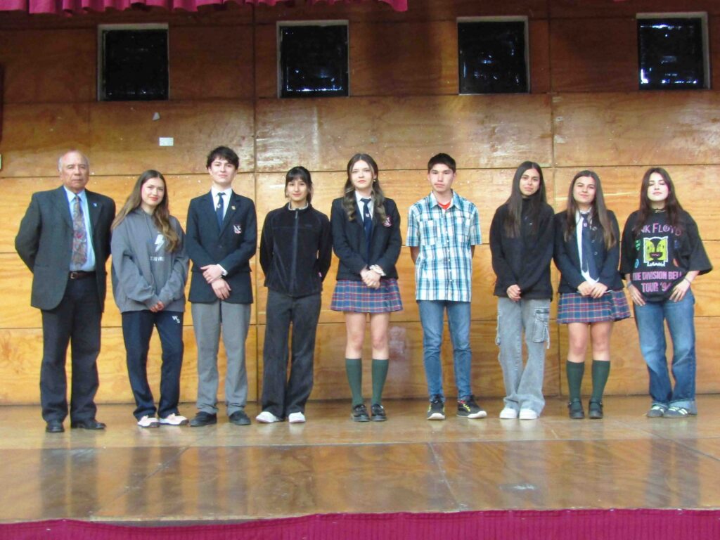 Los estudiantes elegidos son: Agustina Castillo, Maximiliano Pérez, Catalina Fuentes, Constanza Carrillo, Ignacio Antileo, Francisca Pulgar, Catalina Concha y Matilda Espinoza, quienes se sumarán al equipo ya formado por: Renato Machuca, Ignacia Medina, Nury Parra, Cristóbal Castelli, Mariana Leva y Maximiliano Vidal. Todo esto fue reconocido por el Director Académico Sir Raúl Hurtado, la Jefa de Área Senior Ma’am Fabiola Gutiérrez y posteriormente por nuestro Rector, Mr. Nicholas Murphy.
