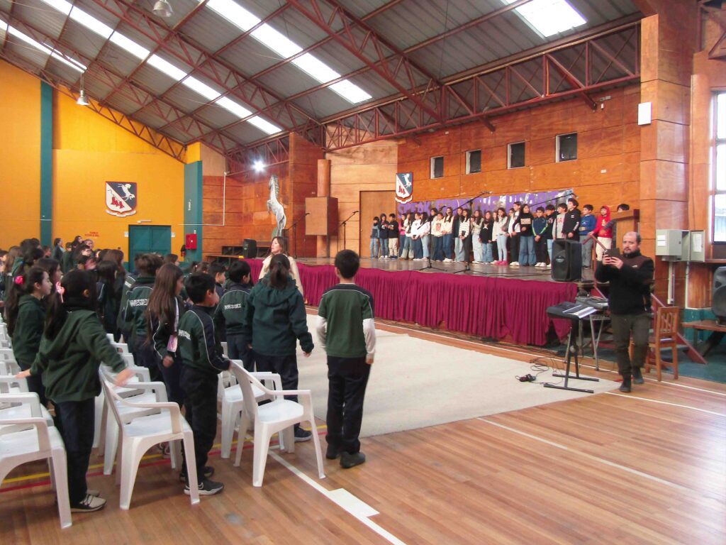 Y para finalizar en Senior, tuvimos una presentación de las maquetas realizadas en tecnología por parte de los alumnos de Senior 3, quienes subieron al escenario y nos explicaron de que trataba esta interesante muestra, también tuvimos a nuestro enfermero, Fernando Mogster Uribe quien dio unos tips para protegerse de la ola de frío que tuvimos hace unos días atrás y para cerrar, los alumnos de Senior 6 nos contaron de un pequeño Podcast que realizaron con sus experiencias en la Gira G.B. que realizaron en 2024.
